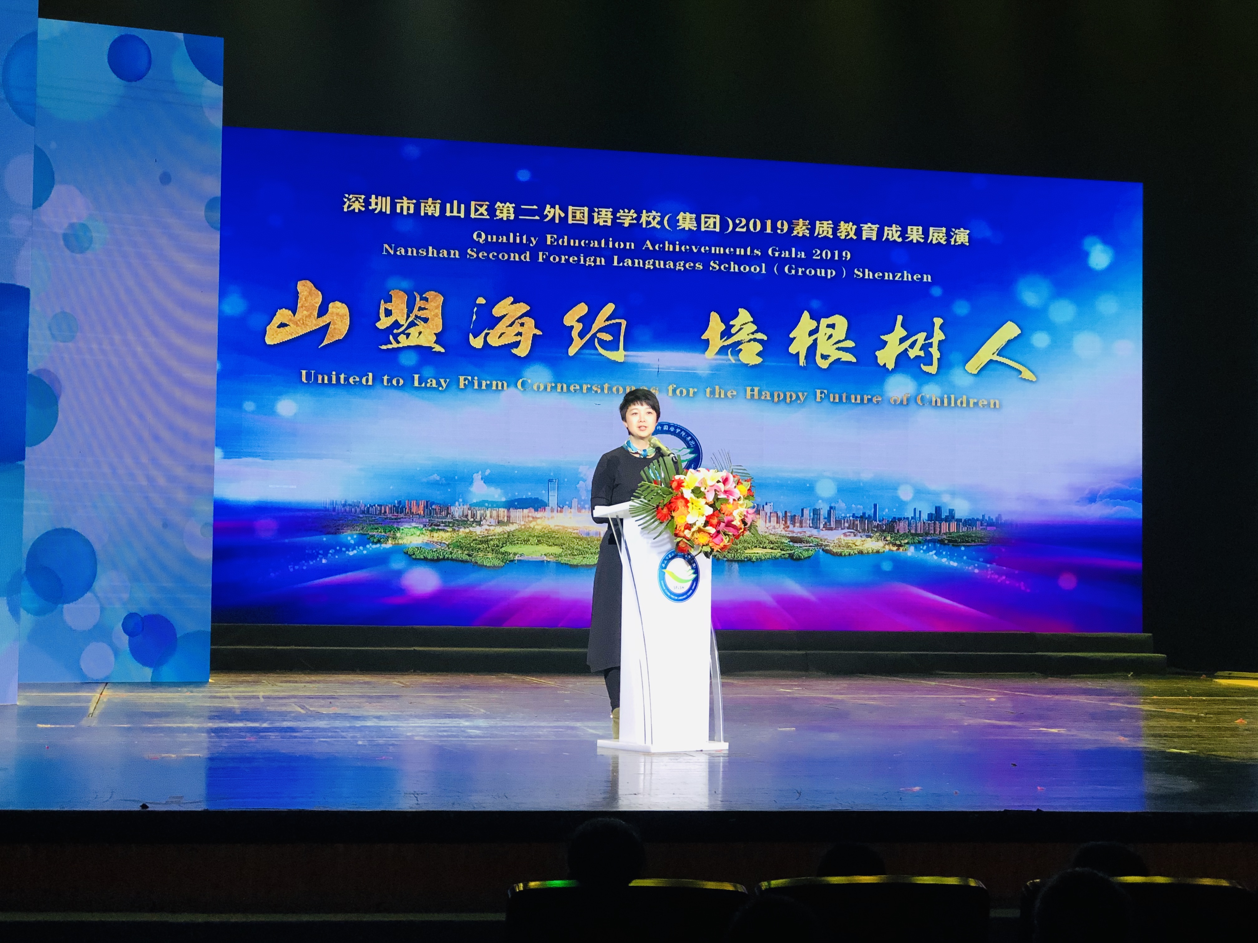 二外集团总校长梁明在致词中表示,南山二外创办至今,不但谛造了南山乃至深圳的一流学校,它的成功之道与个性内涵主要体现在四个方面,一是以学生发展为宗旨,放眼世界,立足二外,培根树人,为国育才,二是是以教师发展为第一要务,相信教师,培养教师,依靠教师,矢志不渝走教育专业发展之路,三是以课程实施为学生成长基本通道,开发课程资源,优化课程设置,追求课程效率,四是以“对人以诚,对事以精”为学校文化传承,光明磊落,精益求精,求真务实,砥砺前行。