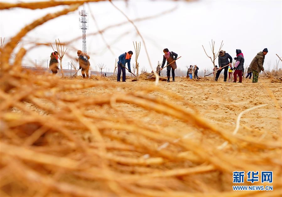 12月24日,滦州市东安各庄镇的农民在栽植桑树。今年以来,河北省滦州市东安各庄镇为破解沙化土地难题,提高土地资源利用率,采取“公司+基地+农户”的方式,因地制宜种植经济效益高的桑树,保护生态环境,增加农业效益。据介绍,该镇今年冬天计划种植桑树3万棵,带动9个村的村民增收。新华社记者杨世尧摄