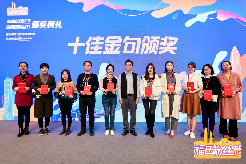 值得注意的是,现场颁发的金句中有一句让观众们十分惊喜:“寻梦诗和远方,遇见最美福田”,这句话用鲜活的形式表达出对粉丝对福田区的美好关切。现场还将这句话写成对联的形式,横批“福星高照”,寓意满满。