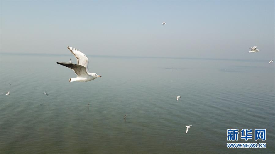 安徽巢湖鸟类翔集,风景如画(11月22日无人机拍摄)。新华社记者张端摄