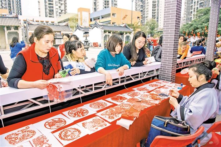传统剪纸手工艺展示和互动体验环节吸引了众多居民。