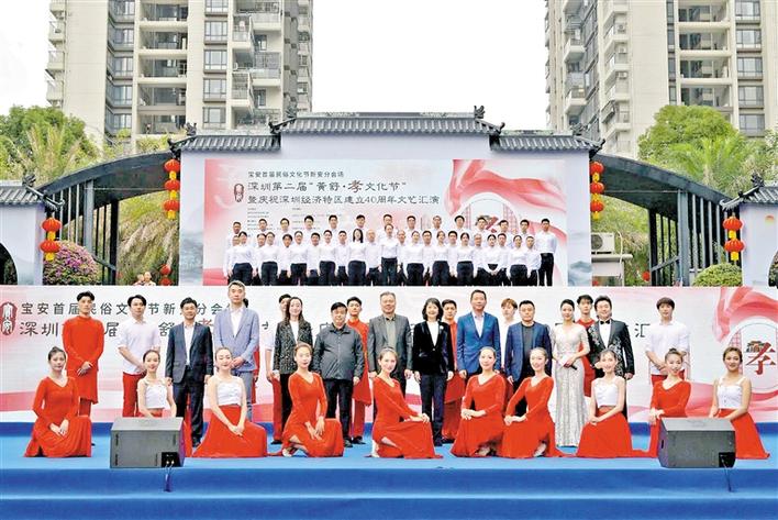 深圳第二届黄舒·孝文化节暨庆祝深圳经济特区建立40周年文艺汇演由新安街道党工委、办事处主办,宝安区宣传文化体育发展专项资金对此次活动给予资助。此次活动为期三天,现场准备了醒狮、梅花拳、粤剧、民乐等精彩纷呈的节目,摆放了橹罟方粽、茶粿、糖不甩等传统美食,并设置了传统手工艺展示及互动体验环节,吸引众多市民携老扶幼来赴这场“文化盛宴”。新安也希望通过活动,进一步发掘和传承在新安根植千年的“孝德”文化,通过市民参与、口碑相传,大力弘扬新时代“孝德”精神,凝聚建设“首善新安”正能量。