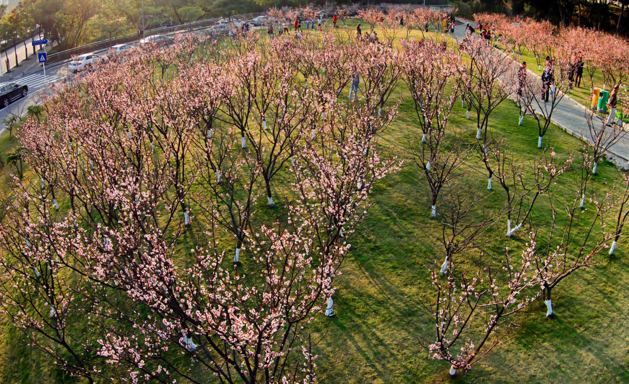 提起梅花总与北方的大雪纷飞相联系,但你知道吗?在深圳也有这样一缕“深巷梅香”,在春节即将来临之际深圳梅园的梅花也即将竞相绽放。梅园(红岭中学高中部北环大道旁山边)占地约23亩、梅花近3000株,今年梅园的梅花预计盛花期元月15日至2月20日。从山上俯瞰,一片梅海美不胜收,每年冬天都能吸引大量市民参观,那么梅园梅花有哪些?据了解梅园种植品种主要采用了经过驯化多年能适合深圳地区生长的梅花品系,分别为潮塘宫粉,桃红宫粉,美人梅,朱砂梅,等品种。清冷娇嫩的白、欲语还休的粉、摇曳生姿的玫红,一朵朵梅花缀于枝头,生机盎然把春报,欢迎前往赏花观景市民。