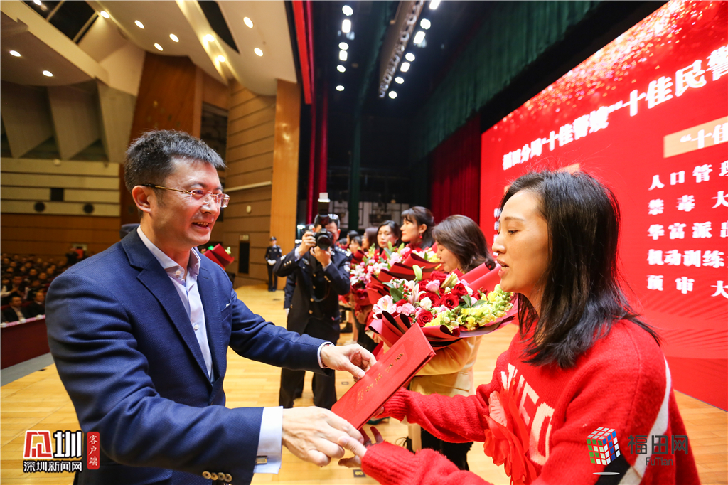 福田区委副书记、区长黄伟给“十佳警嫂”颁奖,据了解,黄伟毕业于中国人民公安大学,上世纪90年代刚来深圳的第一份工作就在福田公安分局福田派出所,可以说是一位科班出身的老公安了。