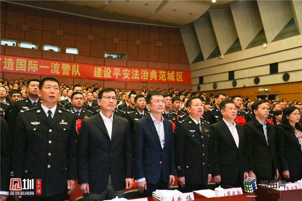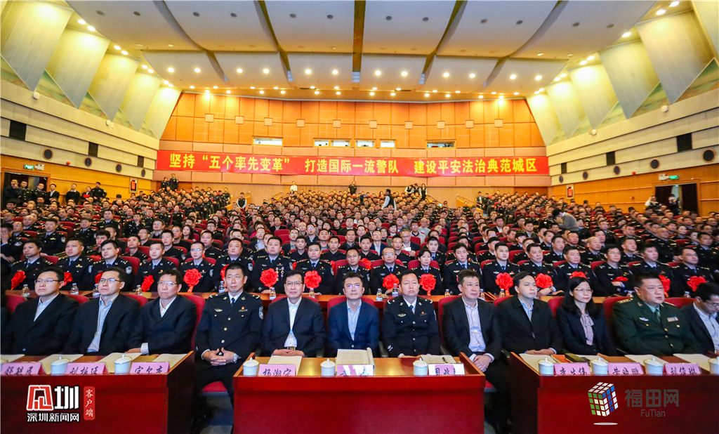 来自全区的民警和辅警坐满了整个会场,福田区副区长、区公安分局局长江峰在会上做公安工作报告。
