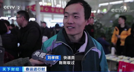 快递员刘孝辉:安徽阜阳的,因为到我们那边很远的,基本上都是十多个小时,都是绿皮的车,这是第一次坐高铁回家。
