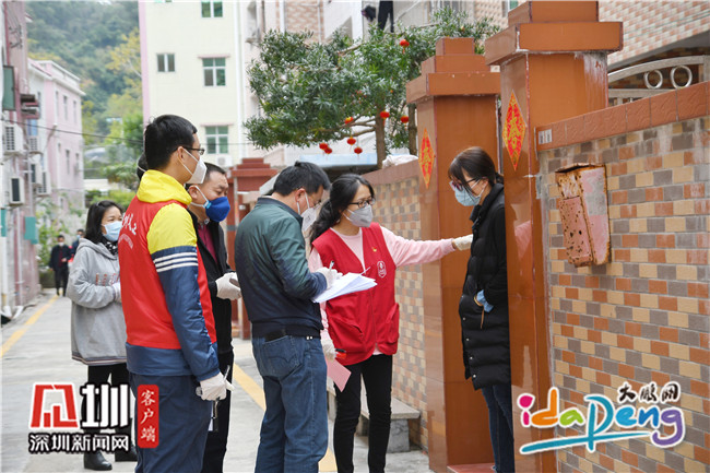 见圳客户端·深圳新闻网2月3日讯(见圳客户端、深圳新闻网记者 谢雨婷 通讯员 龚雯 )“你好,我们是大鹏办事处的,家中是否有外出返乡探亲人员?家中是否有发烧、咳嗽人员?记得勤洗手、戴口罩、少外出……”2月3日下午,大鹏办事处开启“扫楼”入户模式,以社区为单位,统一开展深入“每栋、每户、每人”的居住人员疫情信息排查工作。