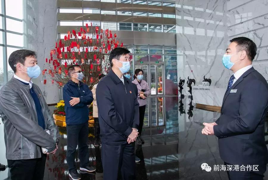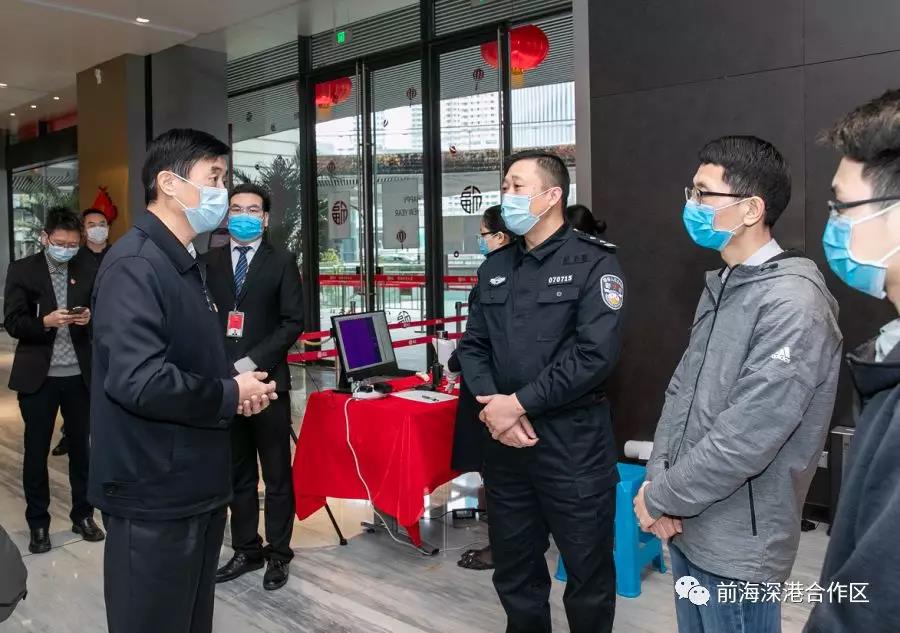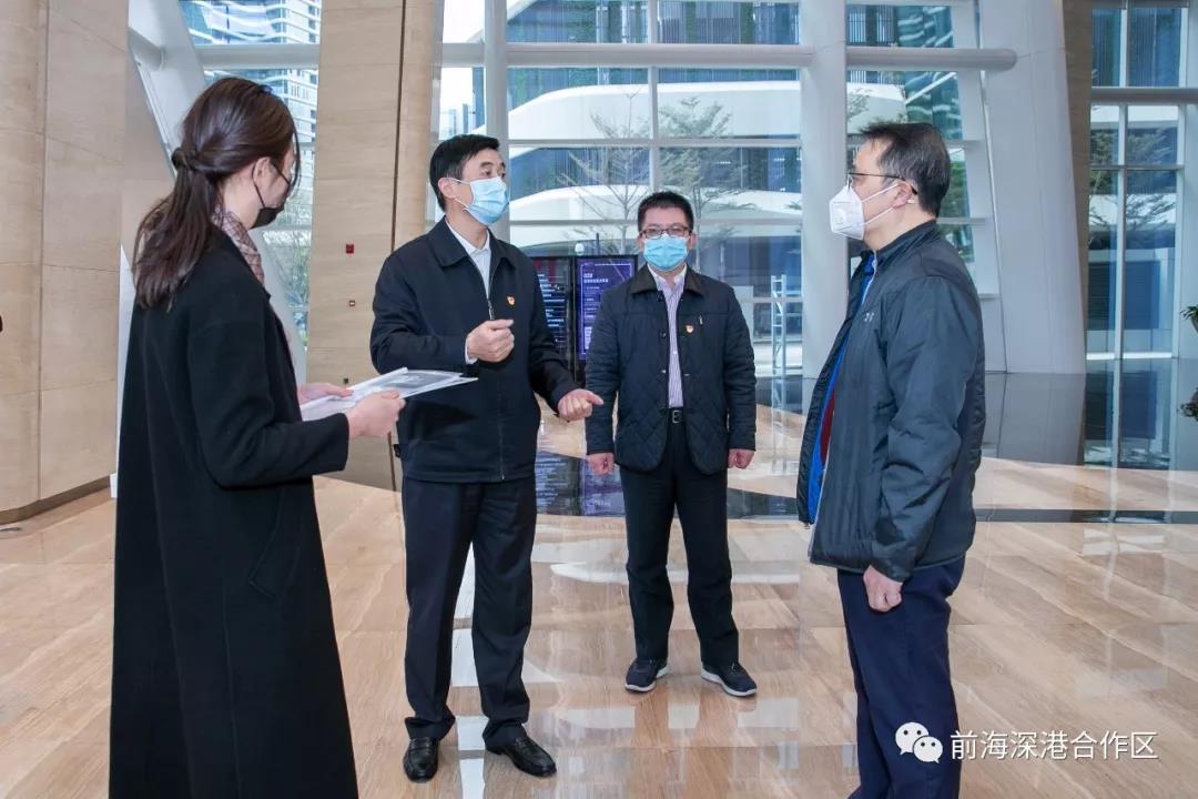 在前海深港基金小镇,田夫详细了解了重点疫区人员排查和企业复工情况。
