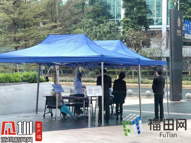 此外,平安金融中心还在外面广场设置了临时隔离区,如果出现发热人员会在临时隔离区进行初步诊断。