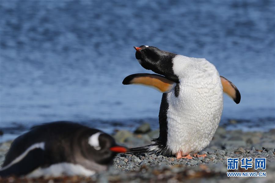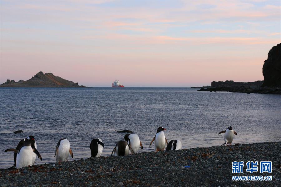 长城站站区海边的企鹅(2月9日摄)。新华社记者刘诗平摄