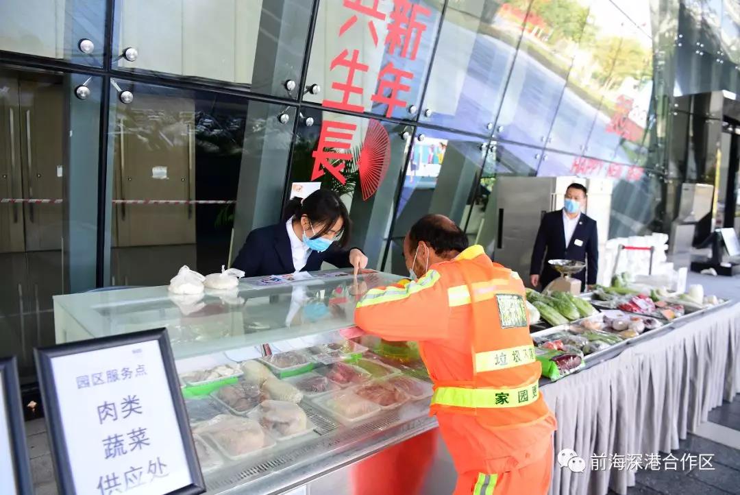 突如其来的疫情,给留守在前海的工地工人到周边采买蔬菜、食品等物资带来诸多不便。在明知多一次人群接触,便多一次被感染风险的情况下,为了给企业复工人员和工地留守人员提供便利,万科前海企业公馆网格党员身先士卒、冲锋在前,在万科前海企业公馆特区馆门口设立蔬菜肉类平价供应点。