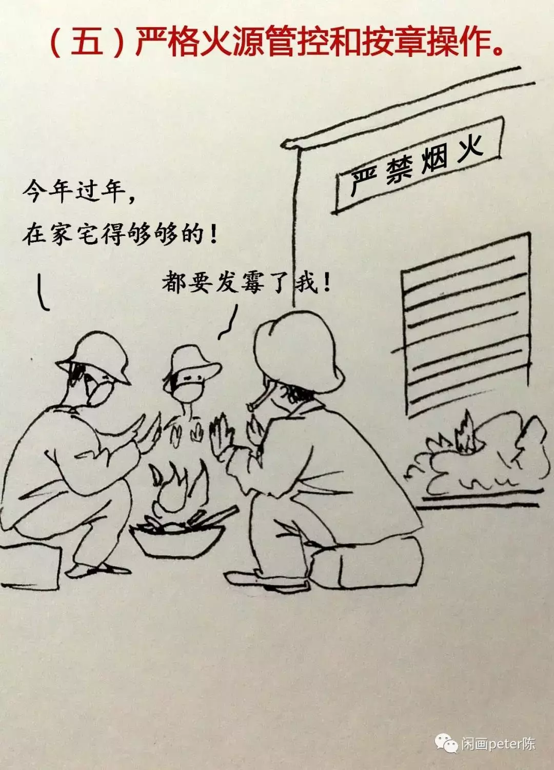 杜绝违规燃放“开门炮”和烟花爆竹,警示和引导员工按照规章进行操作,严禁违规用火、用油、用电、用气。用易燃液体进行清洗等作业时要加强明火、热源、静电等管控,避免引发火灾爆炸事故。