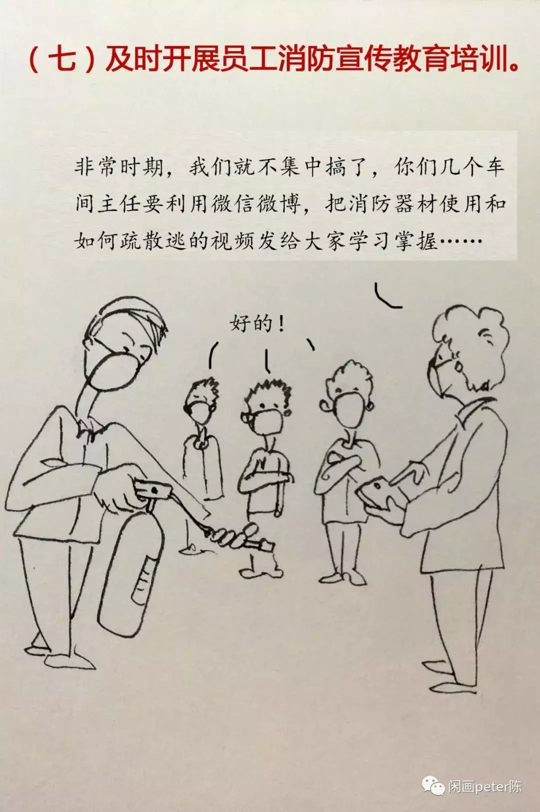 各企业、各单位要及时组织进行一次消防安全培训,使每名员工做到“一懂三会”(即:懂本场所火灾危险性,会报火警、会扑救初起火灾、会疏散逃生)。换岗、新入职员工必须经过消防安全培训方可上岗。消防控制室值班人员及从事电焊、气焊的人员,必须经培训考试合格持证上岗。要在公告栏、过道等显著位置张贴消防宣传画,利用电子屏、员工微信群广泛开展消防宣传提示。