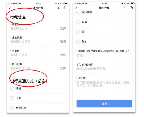 第二步:添加行程。如有多段行程,请在点击确定后,再次点击“添加行程”,添加下一段行程。