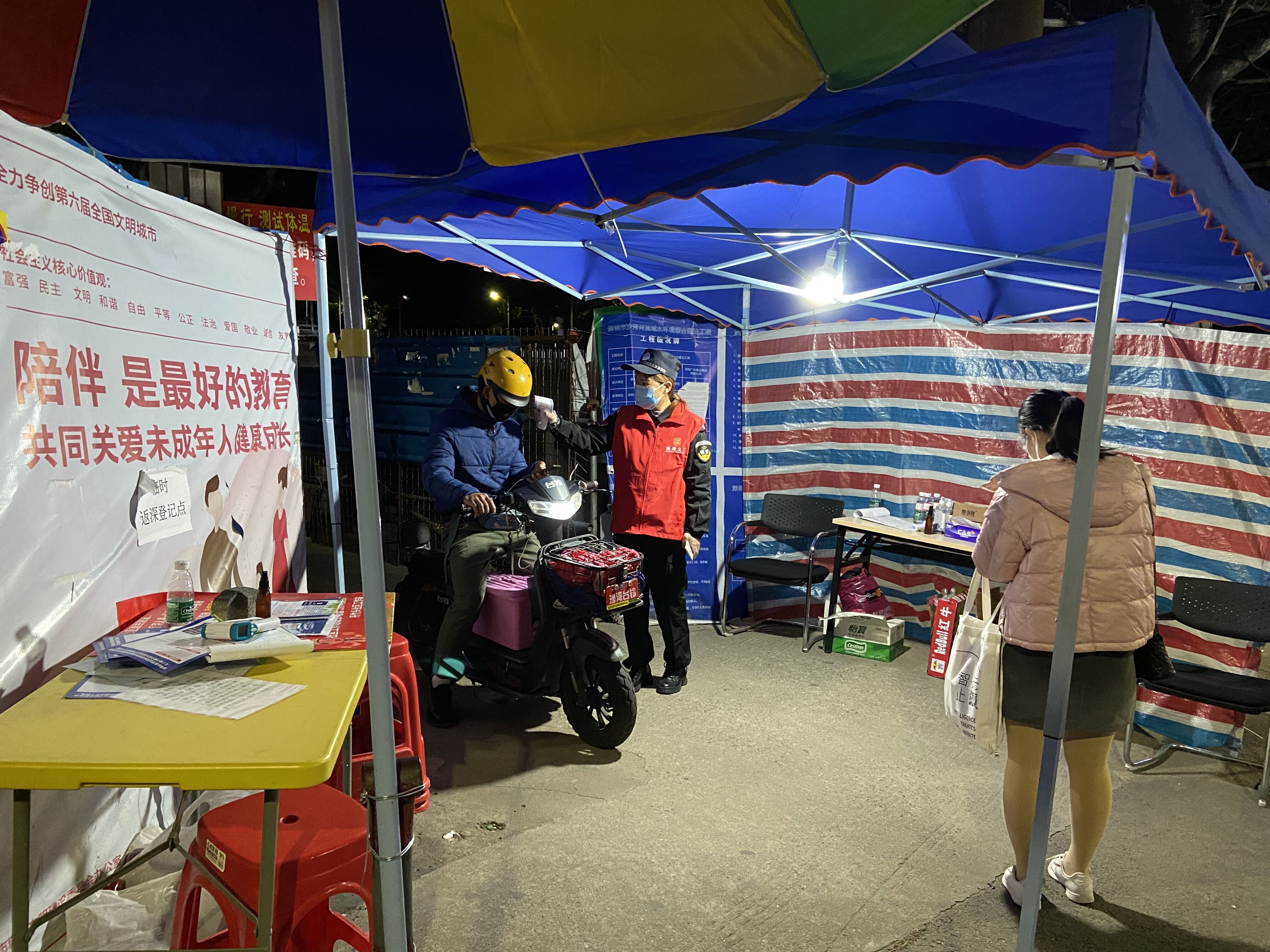 2月13日,年后第一次回龙岗,地铁3号线已经坐满了人。从地铁出站后,发现回小区的小路都被封了,只开放了一个路口,在返家的路程中,我被不同关卡的工作人员测了5次体温,出示了5次在“i深圳”平台上的申报信息。而且各个关卡的工作人员相当尽责,会认真看我申报信息上填写的住址,也会询问我何时何地返深。