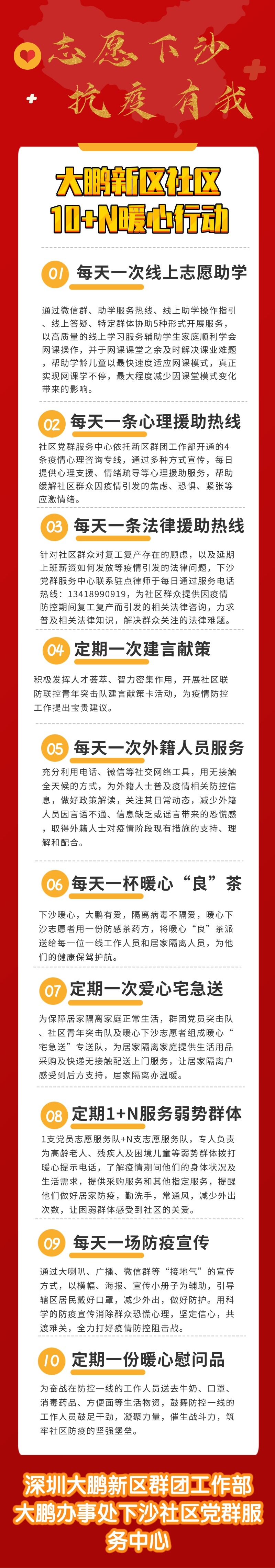 见圳客户端·深圳新闻网2月19日讯(见圳客户端、深圳新闻网记者谢雨婷 通讯员 沈俊娟 谢卉琪 )在疫情防控工作中,深圳的志愿者成为一股必不可少的中坚力量,而志愿者数量占常住人口六分之一的下沙社区,充分发挥社区党群服务中心志愿服务特点,推出“一揽子”暖心服务,探索开创“10+N”防疫志愿服务模式助力抗疫,让社区群众在紧张严密的防疫工作中感受到浓浓的温暖和贴心的关怀。