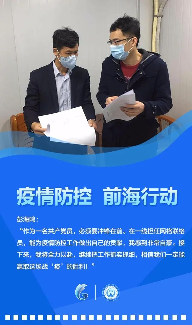 从年初一开始,彭海鸣一直站在疫情防控一线。“作为一名共产党员,必须要冲锋在前。在一线担任网格联络员,能为疫情防控工作做出自己的贡献,我感到非常自豪。接下来,我将全力以赴,继续把工作抓实抓细,相信我们一定能赢取这场战‘疫’的胜利!”彭海鸣说。