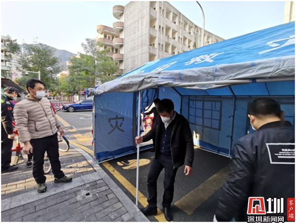 接到疫情防控的通知后,蓝文龙放弃春节假期,立即返回岗位,投身到抗击疫情的工作中。通过电话核查每一位湖北籍人员、详细记录每个人的行程情况、张贴温馨提示和宣传海报……辖区每一处都留下了他的足迹。为加强防控力度,社区对城中村、无物业小区进行围合设点,设立疫情防控检测点。架铁扎、立水马,搭帐篷……哪里需要人手,哪里就有他的身影,2月16日这天,气温骤降,刮起了大风,不少检测点帐篷被吹烂刮倒,蓝文龙看了心里直着急,立刻联系社区协调更换帐篷,帐篷发放下来后,他又二话不说,马上动手,把一个个新帐篷搭建起来。