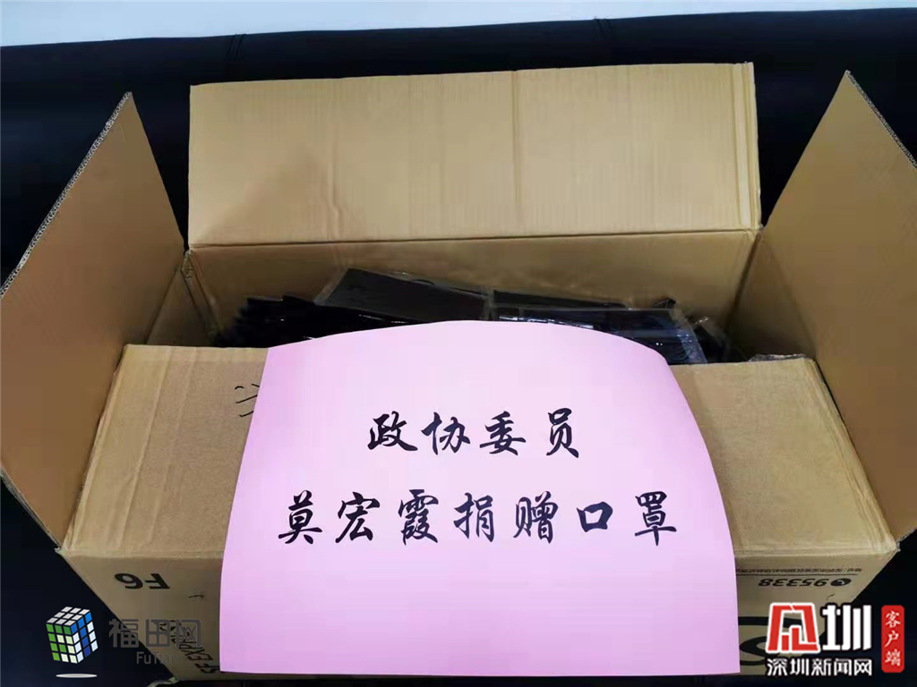 政协委员莫宏霞向莲花、华强北、福田、香蜜湖、园岭、沙头等街道捐赠共5980个口罩。