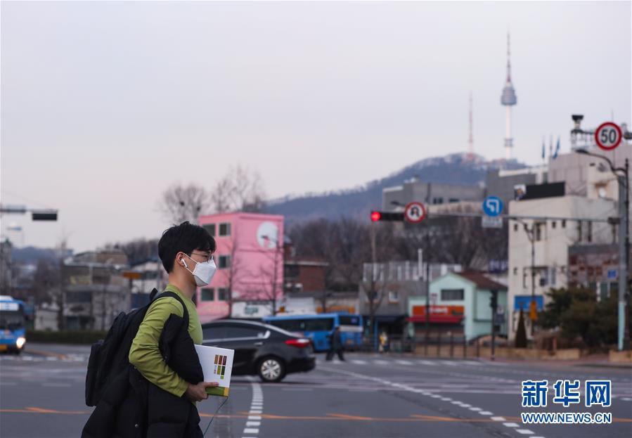 2月24日,在韩国首尔,一名男子行走在龙山区的道路上。韩国疾病管理本部24日最新通报说,当地时间24日9时至24日16时,韩国新增70例新冠病毒感染病例,累计确诊病例增至833例;新增死亡病例1例,累计死亡8例。新华社记者王婧嫱摄