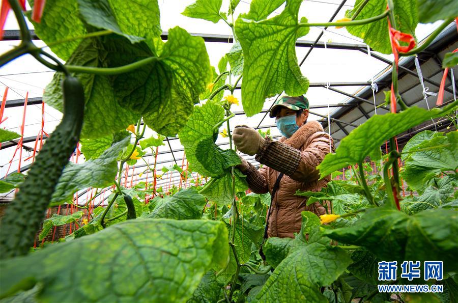 2月25日,河北武安市白沙村村民对蔬菜大棚内的黄瓜进行日常管理。 初春时节,气温回升,农民在田间地头忙于农业生产。 新华社记者 王晓 摄