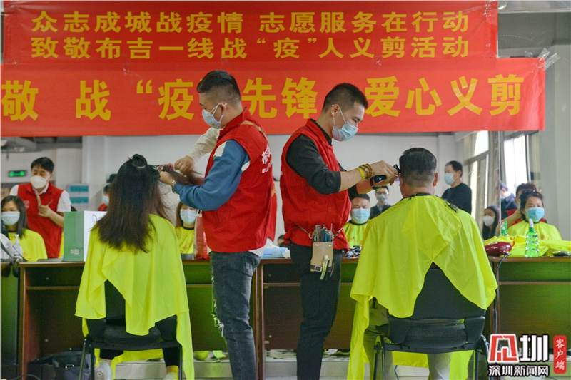 据了解,新冠肺炎疫情防控工作开展以来,布吉街道近2000多名党员干部一直奋战在抗疫一线。2月26日当天,爱心理发队为近百名一线人员“义剪”。爱心理发师在义剪时了解到一线人员的感人故事后,还表示将把爱心“义剪”活动传递下去,只要疫情防疫一线的工作人员有理发需要,将会第一时间响应,做好服务,为打赢疫情防控阻击战贡献力量。