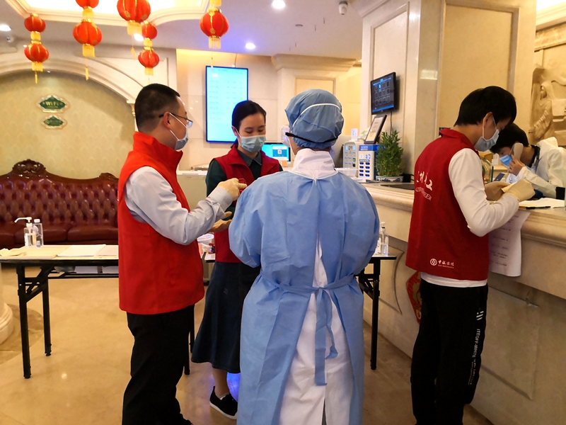 通过福田街道协调,酒店方紧急召回50名员工,配合驿站建设,但是大部分酒店工作人员对健康驿站并不熟悉,缺乏自我防护知识,对接下来面对的工作不无担心。