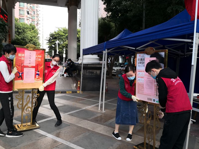 为了做好服务保障工作,福田街道对酒店周围区域每天安排2次消杀,调配和协调帐篷、医疗垃圾桶、口罩、免洗消毒液、宣传海报等保障物资;针对酒店临时启动运作,街道从社区、各部门调配20人,规划分工,指导入住,确保人员安心舒心。同时,街道加强监督巡查,每天三次对安保点、通道、酒店和周边消杀、厨房等十二项关键运行环节检查。