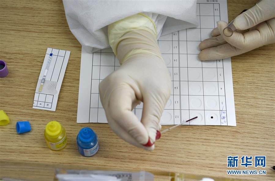 3月1日,在血浆捐献前,宁夏血液中心工作人员按照无偿献血标准对叶先生的血液进行初筛检测。当日,在位于宁夏医科大学总医院的宁夏血液中心爱心献血屋内,新冠肺炎康复者叶先生成功捐献恢复期血浆400毫升,用于新冠肺炎重症、危重症患者救治。叶先生是宁夏第6位捐献血浆的新冠肺炎康复者。据了解,宁夏首例采用血浆治疗的危重型新冠肺炎患者已于2月29日康复出院。新华社记者冯开华摄