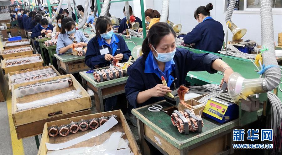 3月2日,深圳市一家企业的工人在生产车间进行结线作业。近来,广东省深圳市在加强新冠肺炎疫情防控的同时,推进企业复工复产。截至2月底,深圳全市规模以上工业企业已开工9187家,开工率达94.51%。新华社记者周科摄