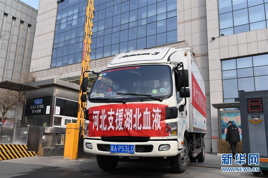当日,由河北省卫生健康委调度的60万毫升红细胞和22万毫升血浆从河北省血液中心出发,送往湖北武汉支援抗疫一线用血。