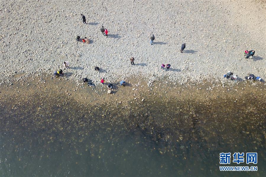 3月3日,市民在黄河兰州段河床上散步(无人机照片)。近日,受黄河上游来水量较少等因素影响,黄河兰州段水位持续下降,出现部分河床“露底”现象。新华社记者范培珅摄