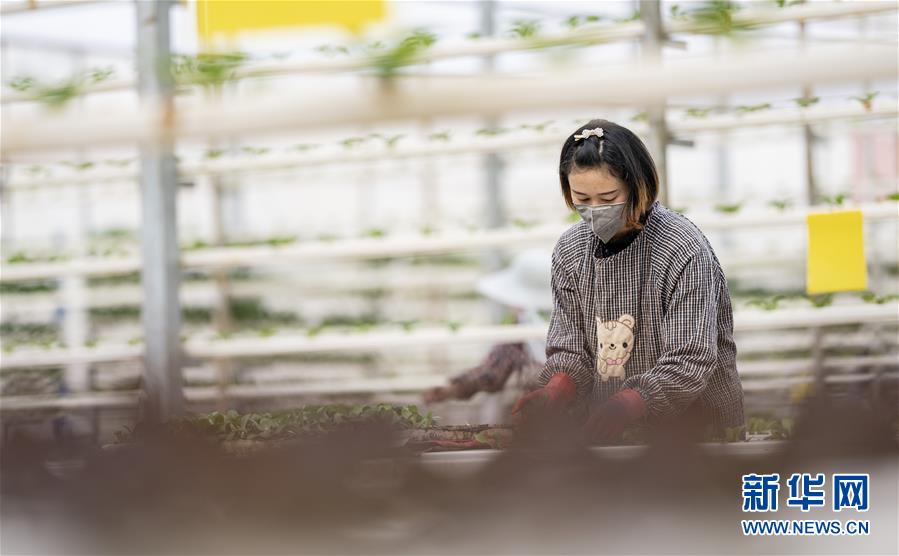云南省陆良县大莫古镇村民顾月娥在云南陆航农业科技有限公司水培蔬菜基地栽种水培蔬菜(2月27日摄)。新华社记者江文耀摄