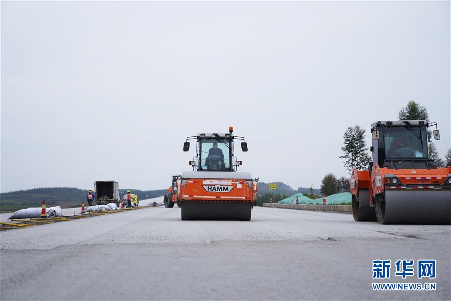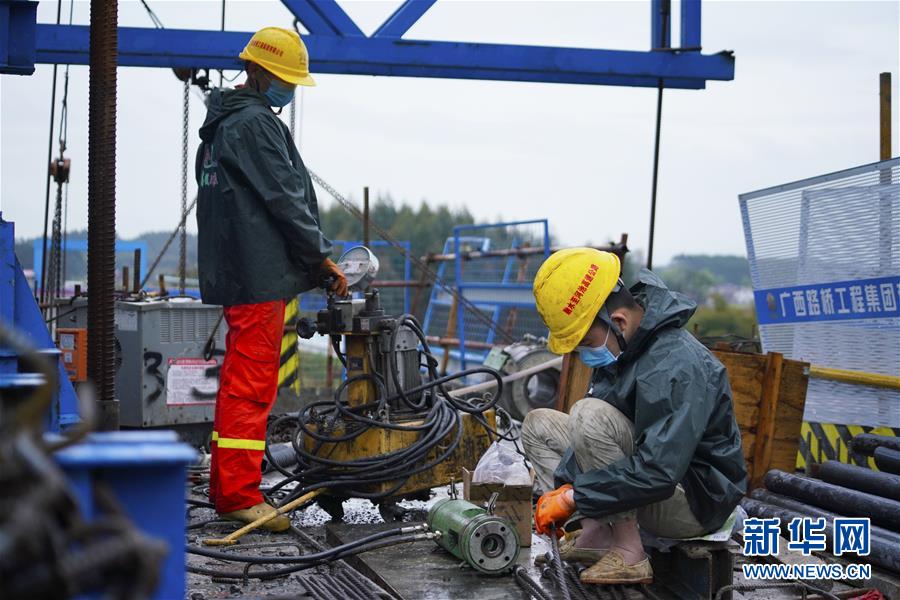 3月4日,工人在融河高速公路罗城段施工现场作业。近日,广西融水苗族自治县至河池市高速公路(融河高速公路)相关建设单位在做好疫情防控的同时,抓紧复产复工,目前工程复工率已超过80%。新华社记者杨驰摄