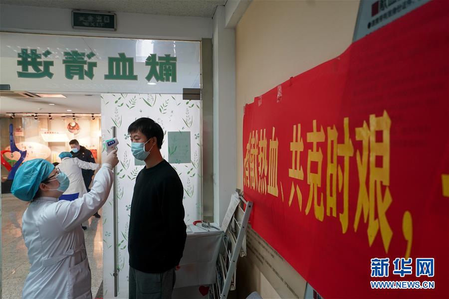 3月4日,在南京红十字血液中心,市民在献血前接受体温测量。新华社记者季春鹏摄