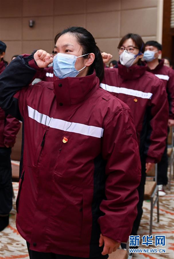 这是主题党日活动现场(3月5日摄)。当日,中日友好医院赴武汉医疗队新党员宣誓暨重温入党誓词主题党日活动在湖北省武汉市举行。新华社记者陈晔华摄
