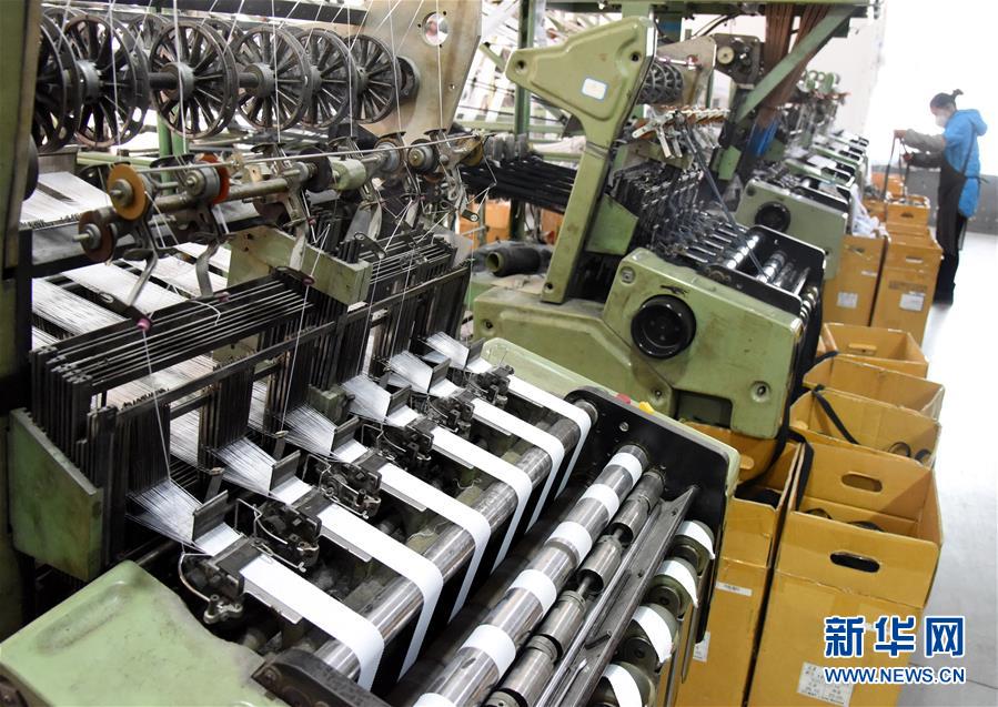 3月5日,青岛海丽雅集团员工在口罩耳带生产车间工作。新冠肺炎疫情发生后,青岛海丽雅集团在得知口罩生产配套品耳带短缺后,恢复了口罩耳带生产线,并组织人力生产,助力疫情防控。新华社记者李紫恒摄