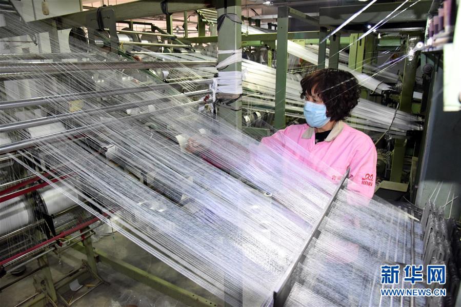 3月5日,青岛海丽雅集团员工在口罩耳带生产车间工作。新冠肺炎疫情发生后,青岛海丽雅集团在得知口罩生产配套品耳带短缺后,恢复了口罩耳带生产线,并组织人力生产,助力疫情防控。新华社记者李紫恒摄
