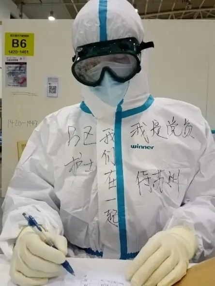 ▲正在武汉客厅方舱医院忙碌的深圳援鄂护师侍苏州(受访者供图)