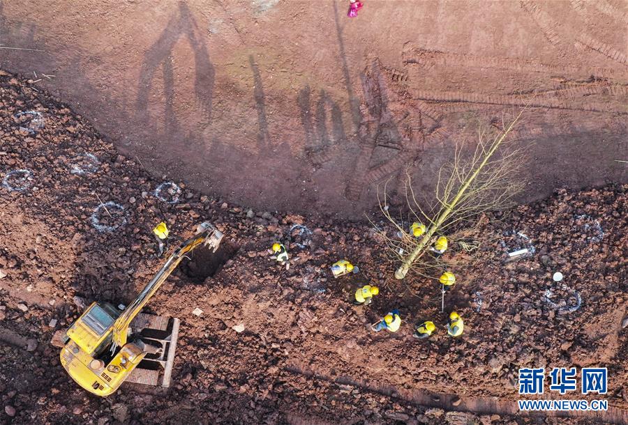 3月6日,工人在重庆广阳岛进行生态修复作业(无人机照片)。新华社记者王全超摄