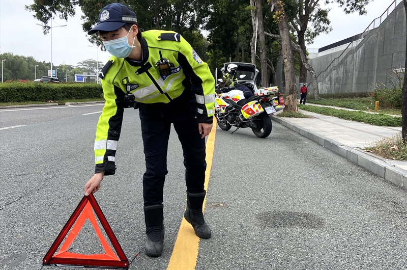 杨曼愚,福田大队“花木兰”队女铁骑。忙碌完春节假期的交通保障后,杨曼愚本可休假回家,面对突如其来的新冠肺炎疫情,她没有丝毫犹豫,毅然退掉回家机票,放弃春节难得的团聚机会,留下来坚守岗位。抗疫期间,她时刻待命,只要命令一下,就听从指挥,到广深高速皇岗、福田出口防疫检查点参加车辆疏导。在点位上,她积极配合战友们做好各项疫情防控工作,切实加强巡逻防控和宣传引导,及时疏通拥堵车流。从防疫检查点成立起,杨曼愚就奋战在一线,纵使任务繁重、黑白颠倒,她也没有半点怨言。“穿了这身警服,担了责任,就要冲到人民前面,不给病毒任何可乘之机。”简单的话语,传达出巾帼不让须眉的坚定信念。