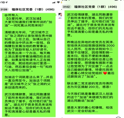 还有一些驻辖区机关单位的党员也找到夏露,想通过她来捐款,说就信任她。夏露说:“每当有这样的党员们找到我,我很感动,他们年轻时候已为新中国立下赫赫功劳,年纪大也与祖国同呼吸、共命运。他们都能这样,我们年轻人更应该多做一点。”短短两日,群内党员捐款热情高涨,180余名党员参与捐款,总计募集9万余元善款。