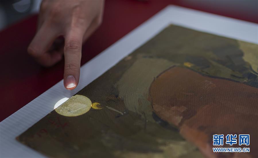 文物修复师郎翠妍在修复著名画家吴冠中的油画(1月15日摄)。新华社记者吕小炜摄