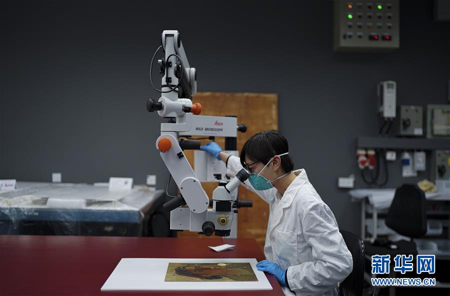 香港康文署文物修复办事处平面文物分组的负责人杨甦(右)与文物修复师郎翠妍在讨论(1月15日摄)。新华社记者吕小炜摄