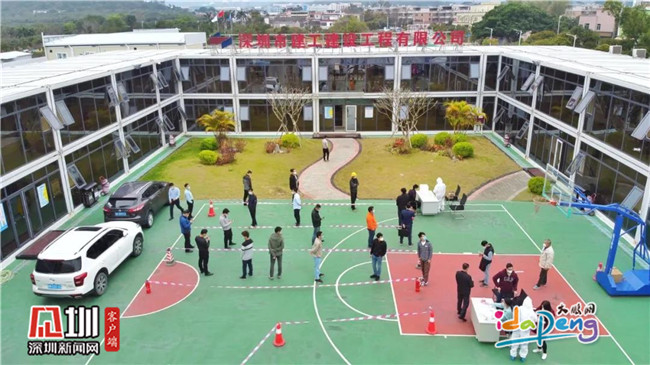 3月6日上午,在核龙线市政化改造工程项目部现场,100余名工人分组有序进行登记和采样,工作人员根据检测名单对工人进行咽拭子取样,整个环节用时不到2分钟。下午将在深圳学校人大附中(九年一贯部)二期工程项目部进行,当天将完成182名工人检测工作。