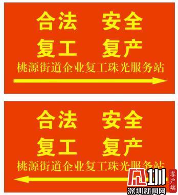 园区门口设置桃源街道企业复工珠光服务站的指引牌