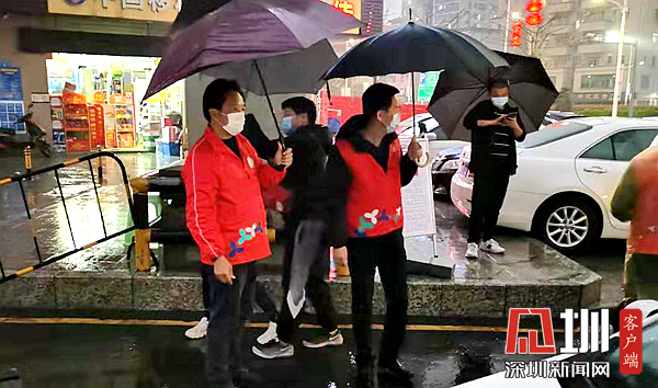 麦国林(左一)雨中深夜坚守防疫检查点。