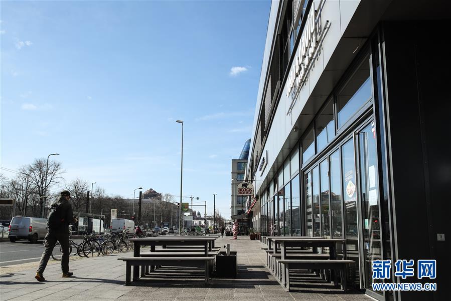 这是3月16日在德国柏林拍摄的一家因疫情关闭的餐馆。德国疾控机构罗伯特·科赫研究所公布的最新数据显示,截至15日15时,德国累计新冠肺炎确诊病例升至4838例,较前一日增加1043例,死亡病例升至12例。新华社记者单宇琦摄
