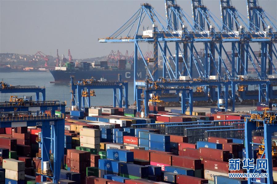 3月17日,青岛港集装箱码头外一艘货轮正在进港。近日,山东港口集团各港区相关企业已全面恢复生产,船舶抵离港班次、集装箱吞吐量等均逐步回升,港口生产有序推进、积极向好。新华社记者李紫恒摄