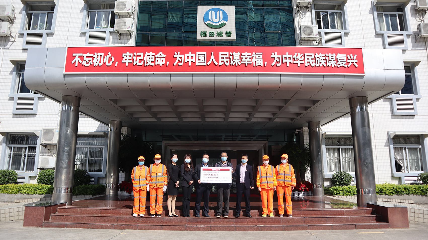 为保障环卫一线工人的人身安全,福田区城管和综合执法局多措并举,先后开展23批次防疫物资支援,累计筹措防护口罩12.84万个、消毒粉204公斤、防护手套2156副、防护裤600条、“抗疫一号方”中药包7300袋,消毒液10445公斤,将它们亲手交到一线环卫工人手中。同时,还为全区环卫工人申报了华夏人寿“守护保”防疫保险3207份,确保人手一份,一旦确诊新冠肺炎可获赔20万元。在此基础上,还专门为垃圾转运站等高风险岗位人员额外申请了建设银行“战役爱心保”防疫保险400份,一旦确诊新冠肺炎可在20万基础上再获赔20万,实现安全保障全覆盖。